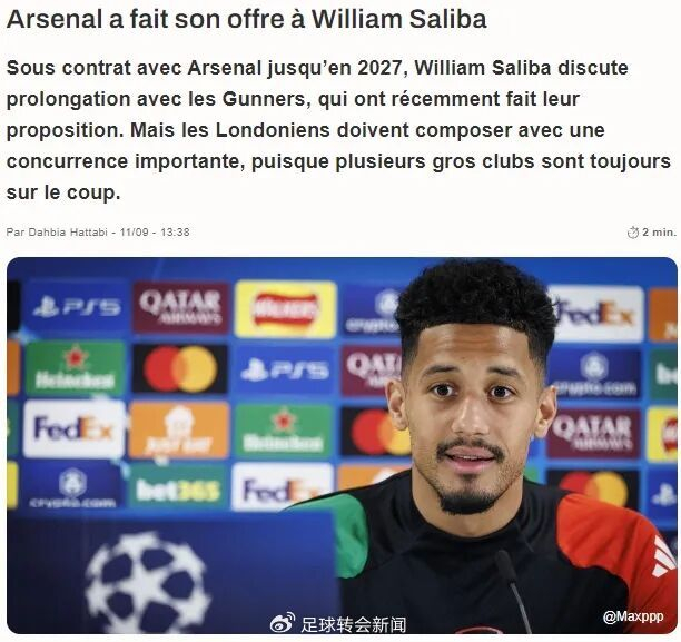 萨利巴当下的合同2027年到期,Foot Mercato表示法国人对续约持开放态度,不过目前协议还未达成,萨利巴希望未来能赢得重要冠军奖杯。